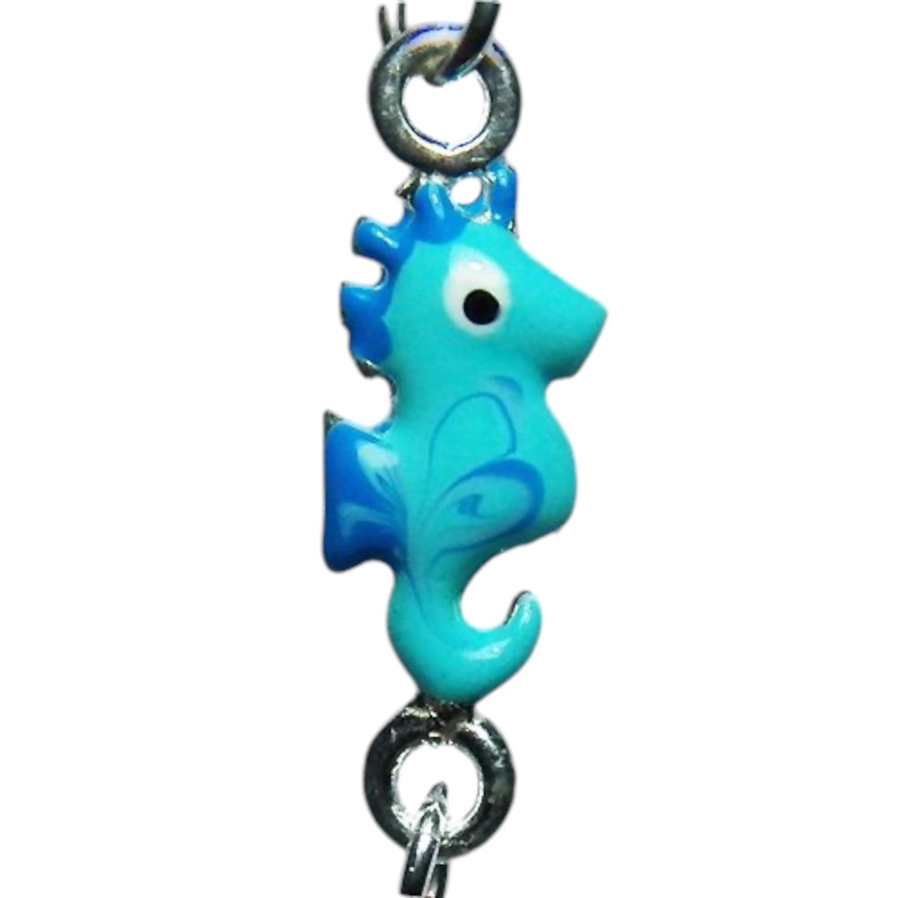 Kinderarmbandje met naamplaatje en een geΓ«mailleerde bedel in de vorm van een zeepaardje eraan. Dit armbandje is gemaakt van gourmet schakeltjes en voorzien van een veerringetje als slot. Door het plaatsen van twee eindogen, met twee cm schakeltjes ertussen, is dit armbandje op twee lengtes te dragen. Het is nikkelvrij en niet gerhodineerd.
