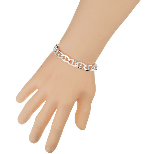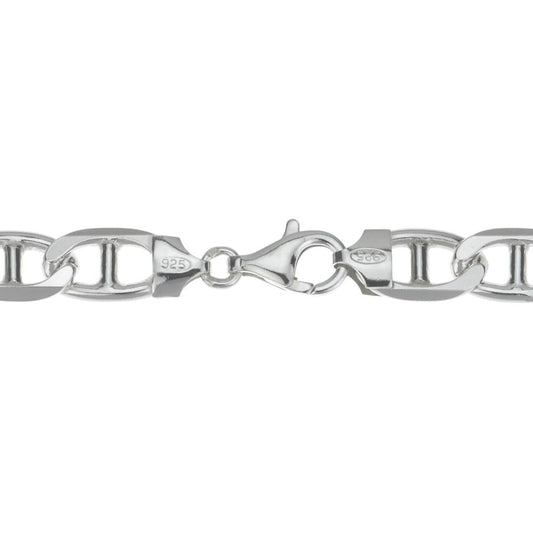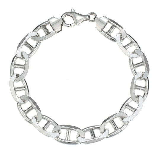 Massieve gucci armband, 10 mm breed, met sterke karabijnhaak als slot. Deze gucci armband is gemaakt van eerste gehalte zilver (925/1000) en is voorzien van bijbehorend wettelijk verplicht zilverkeurmerk. Gucci is de naam van de schakel, niet het merk. Deze armband is, net als alle andere sieraden in onze collectie, merkloos. Deze schakel wordt ook wel mariniersschakel genoemd. De schakelarmband bestaat uit massieve, flexibele schakels die zeer plat van vorm zijn. Deze armband is nikkelvrij en niet gerhodineerd.
